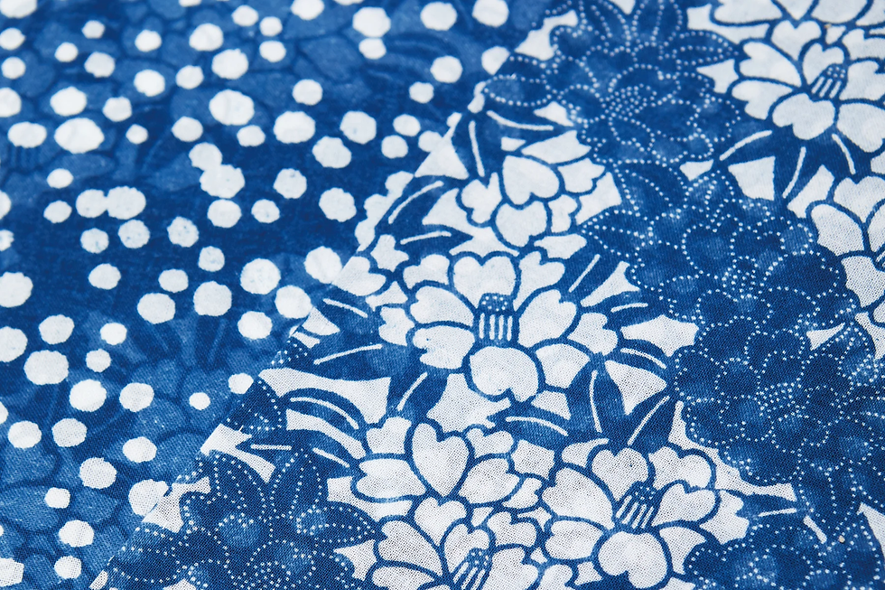 Nagaita Chugata is a traditional Japanese stencil dyeing technique known for its reversible patterns achieved by applying resist paste to both sides of the fabric before immersing it in indigo dye. The method’s name refers to the long board, roughly 5.4 meters, used to stretch the cloth, and to the medium-sized patterns that fall between komon (small) and omon (large). Commonly used during the Edo period for dyeing cotton yukata worn by everyday people, the technique relies on Ise stencils, hand-made rice paste, and natural indigo. Today, artisans continue the tradition while innovating with materials such as hemp and silk, expanding its artistic expression beyond yukata.